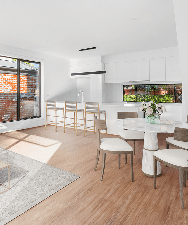 The result is four two and three-bedroom townhouses that sit comfortably within the suburb’s character while meeting the needs of those who live here. The design is measured and deliberate, prioritising functionality, durability and efficiency over excess. Induction cooking, EV-ready charging and adaptable layouts support both family life and working from home. Nothing unnecessary. Nothing overlooked.